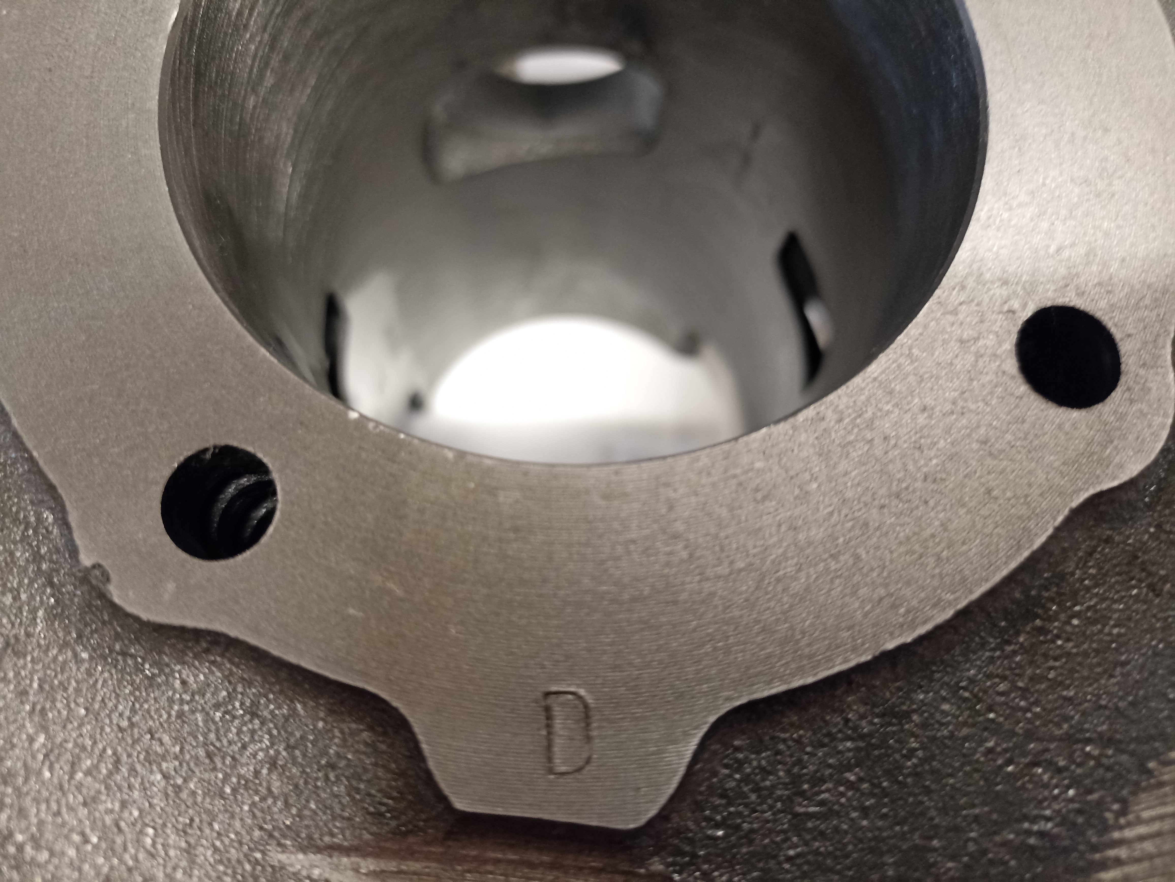 Neue Zylinder werden nach dem Hohnen vermessen und abhängig vom exakten Durchmesser mit Buchstaben in Kategorien unterteilt. Der zum Zylinder verwendete Kolben muss den selben Buchstaben bzw. die selbe Kategorie haben. Die Bilder in der Artikelbeschreibung zeigen als Beispiel einen Zylinder und einen Kolben der Kategorie "D"