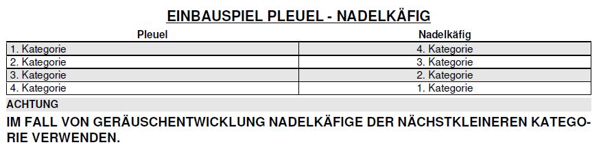Die Kategorie des Pleuellagers ist entsprechend der Tabelle zu wählen.